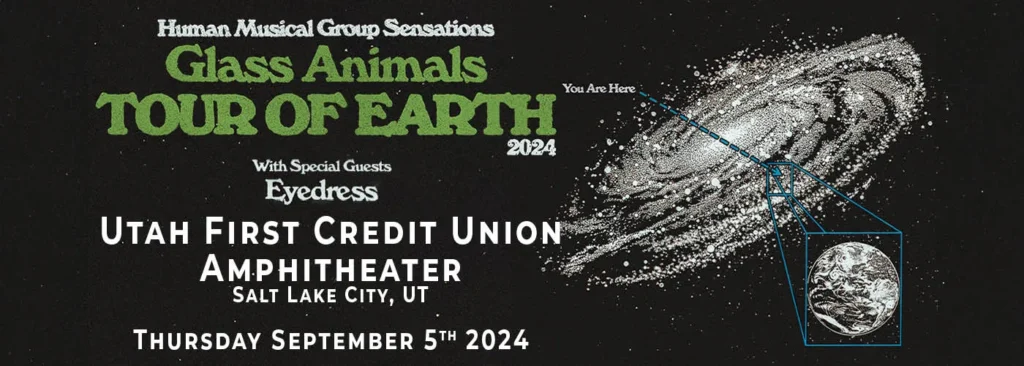 Glass Animals, with special guests, Eyedress for the Tour of Earth 2024. Playing live at Utah First Credit Union Amphitheater on Thursday, September 5th 2024, Grab those tickets now for a little as $42!!!